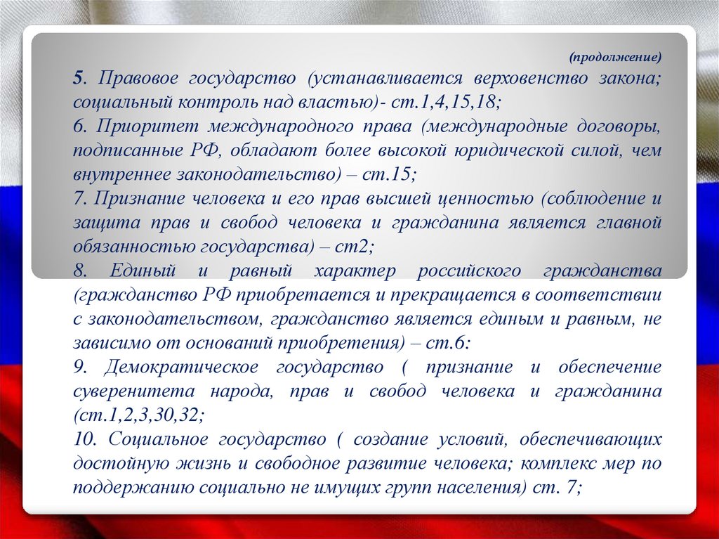 (продолжение)5. Правовое государство (устанавливается верховенство закона;