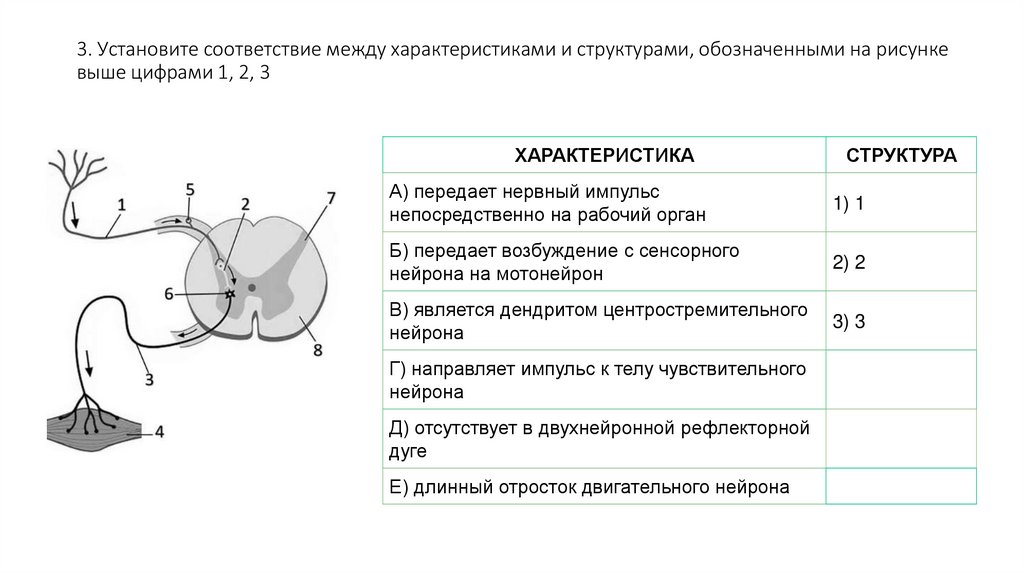 3. Установите соответствие между характеристиками и структурами, обозначенными на рисункевыше цифрами 1, 2, 3