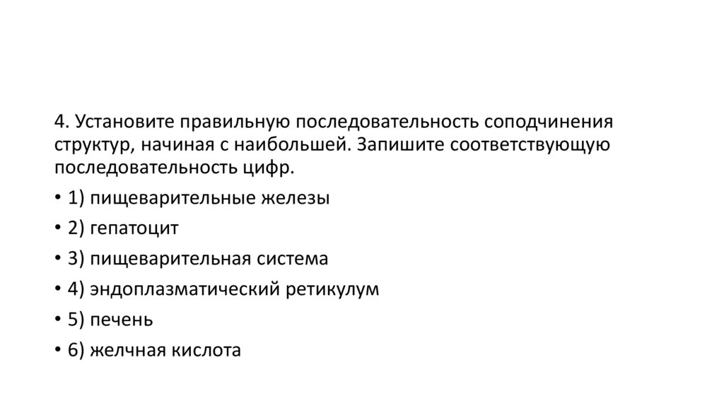 4. Установите правильную последовательность соподчиненияструктур, начиная с наибольшей. Запишите соответствующую