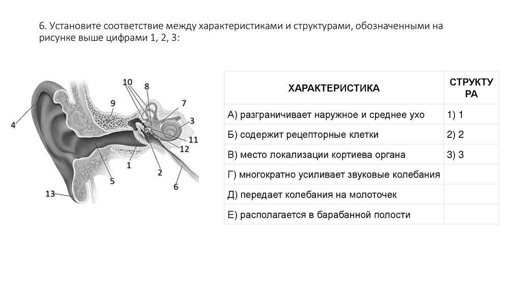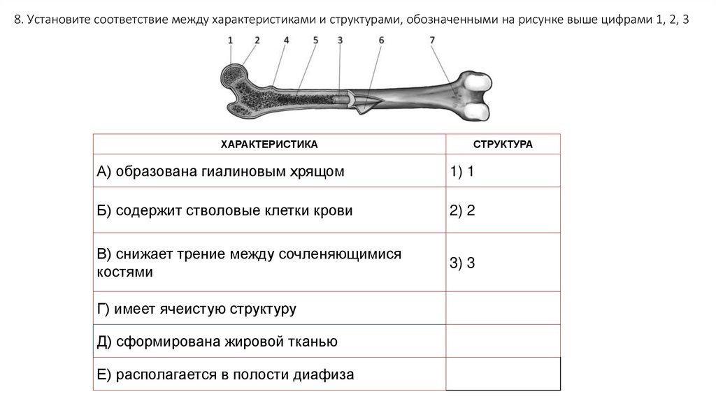 6. Установите соответствие между характеристиками и структурами, обозначенными нарисунке выше цифрами 1, 2, 3: