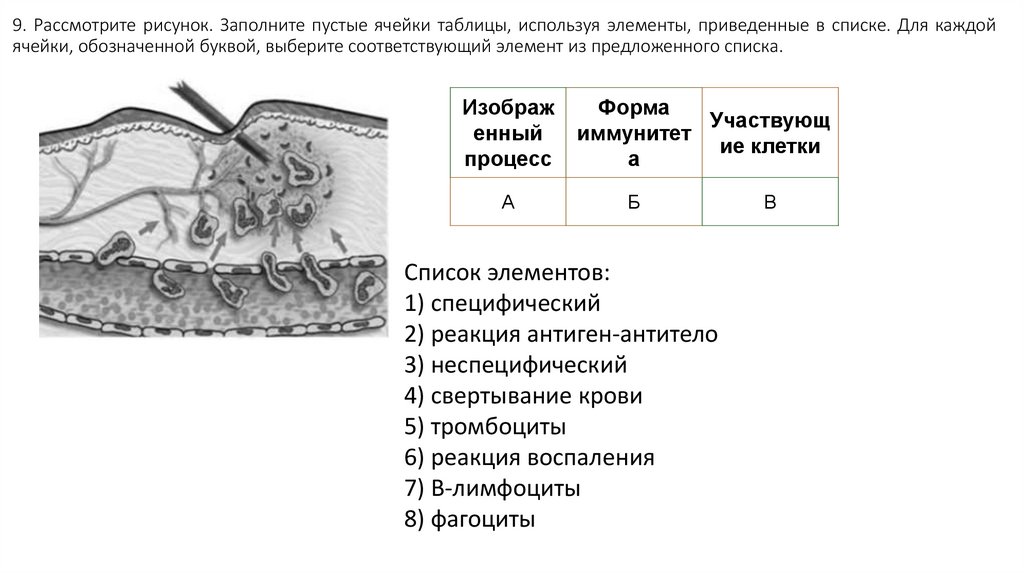 9. Рассмотрите рисунок. Заполните пустые ячейки таблицы, используя элементы, приведенные в списке. Для каждойячейки, обозначенной буквой, выберите соответствующий элемент из предложенного списка.
