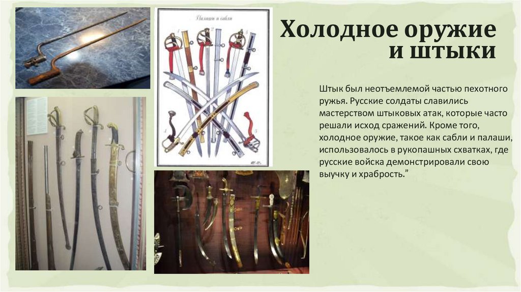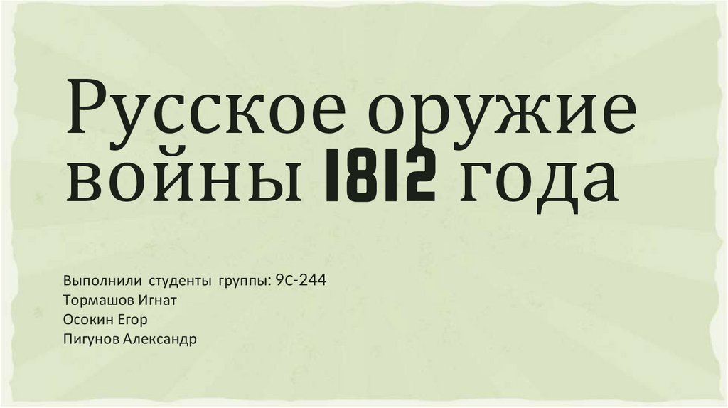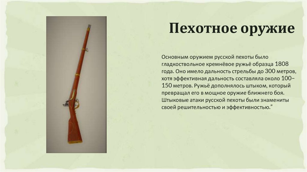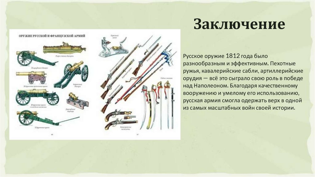 1812 году. Мы рассмотрим основные виды вооружения, их