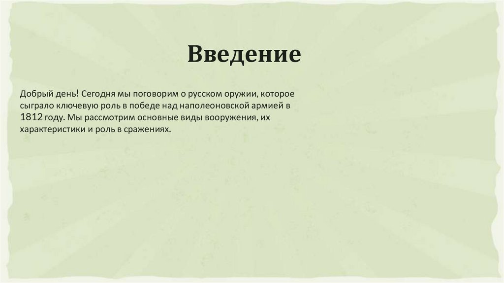 ВведениеДобрый день! Сегодня мы поговорим о русском оружии, которое