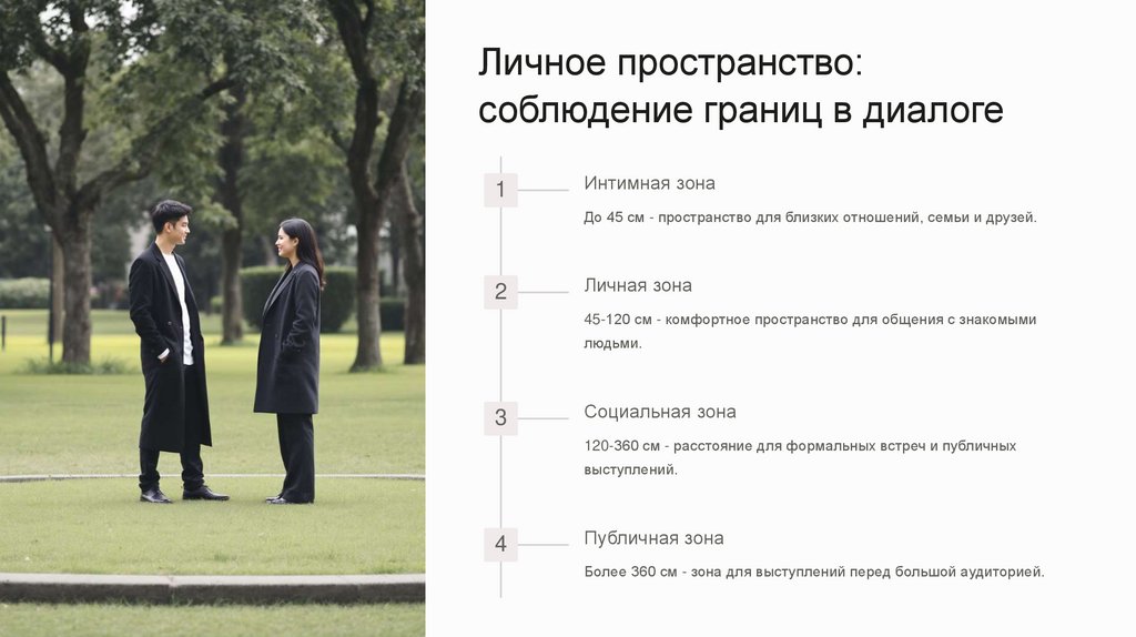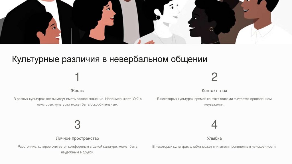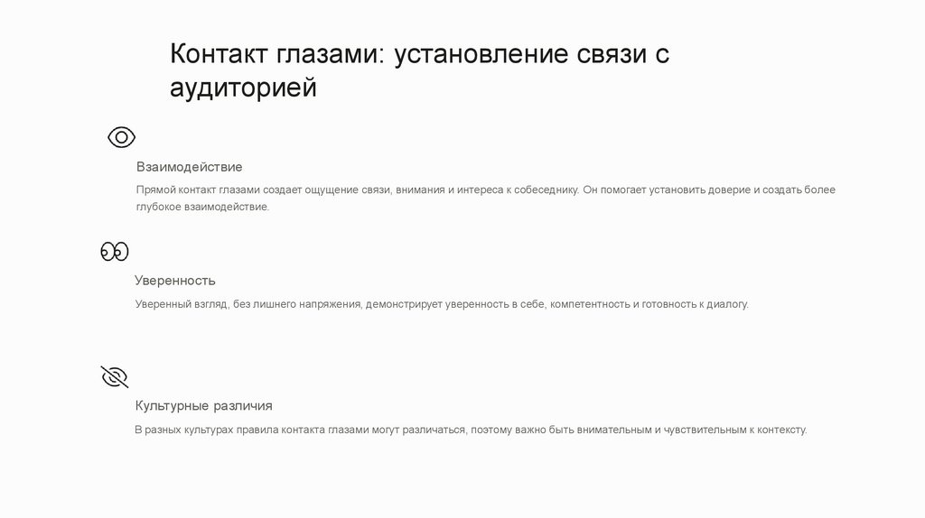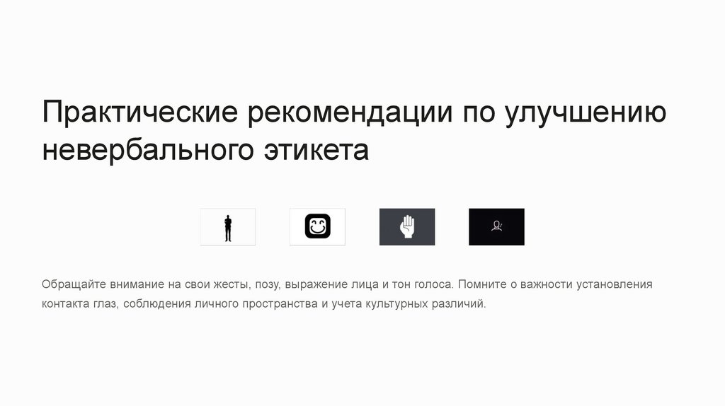 контакта глаз, соблюдения личного пространства и учета культурных различий.