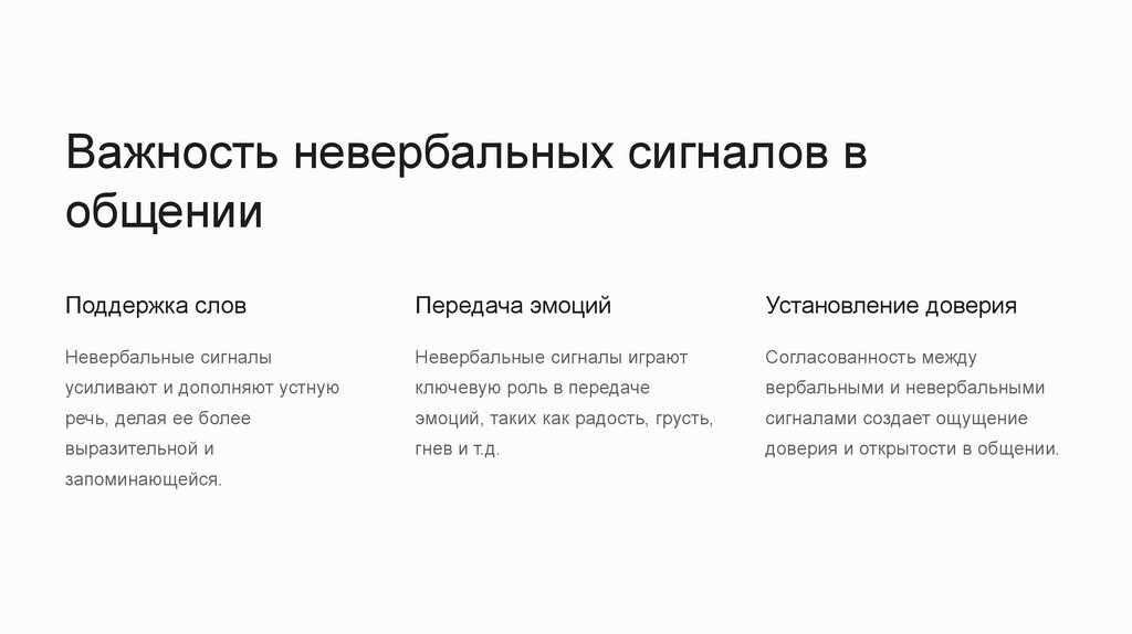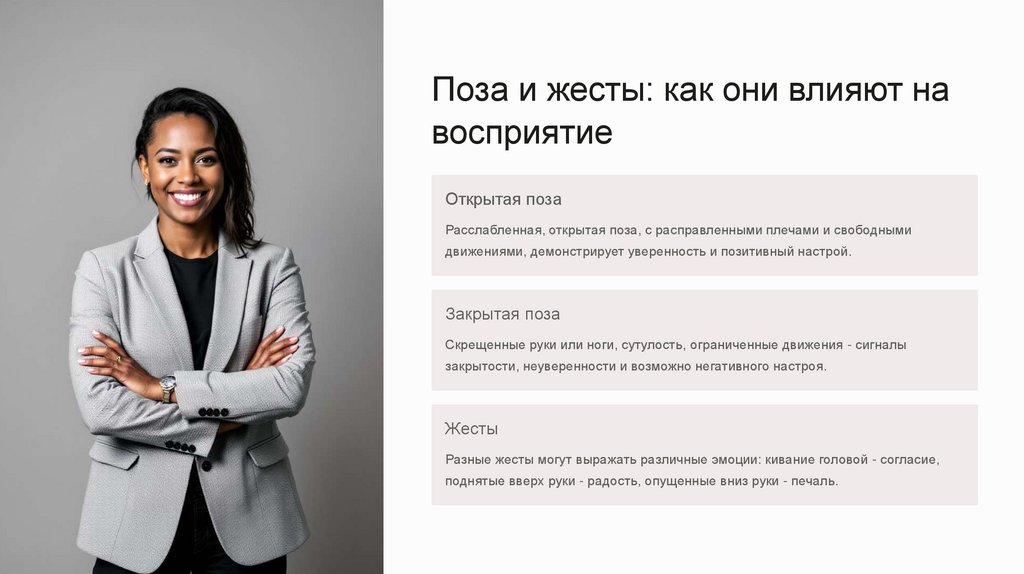 Обращайте внимание на свои жесты, позу, выражение лица и тон голоса. Помните о важности установления
