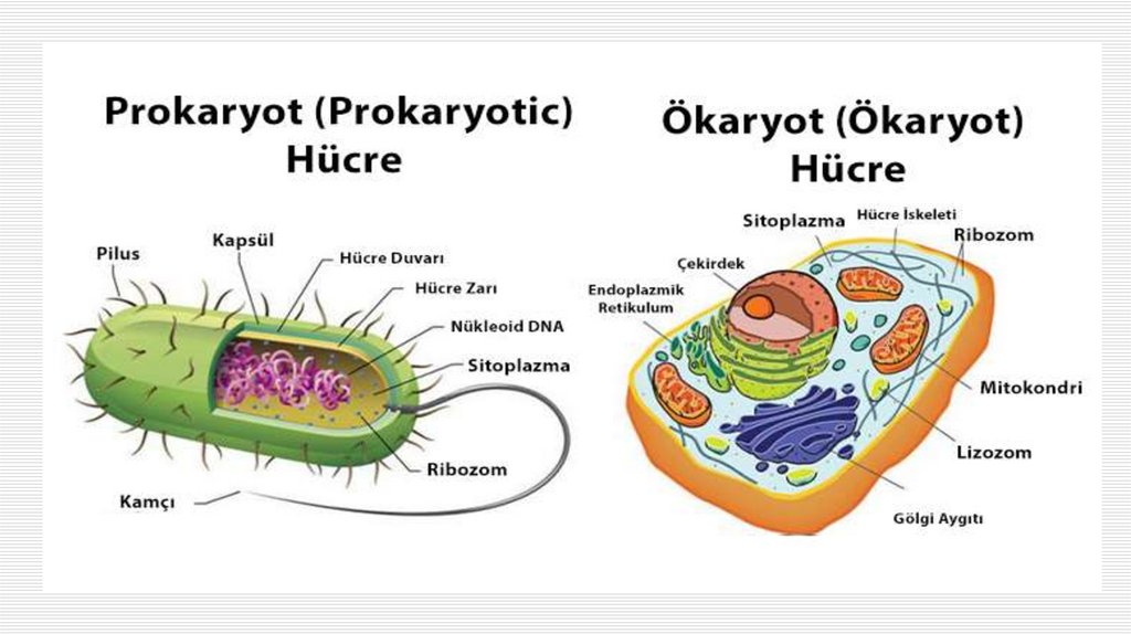 Hücre çeşitleri yapılarına göre ikiye ayrılmaktadır:Prokaryot (Prokaryote) Hücre: