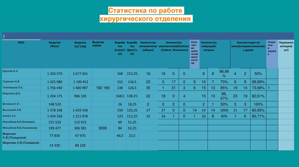 Статистика по работехирургического отделения