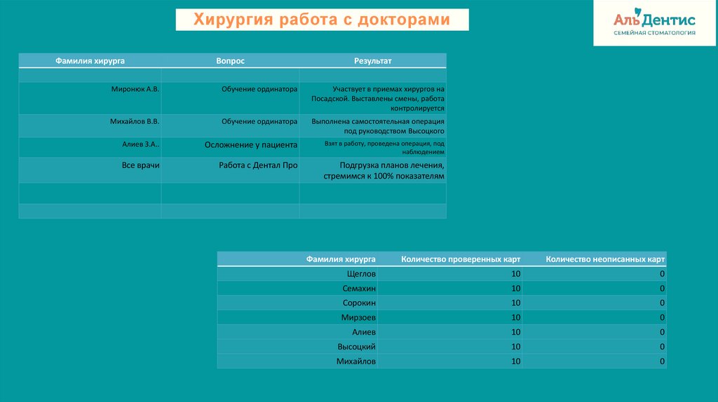 Хирургия работа с докторамиФамилия хирурга