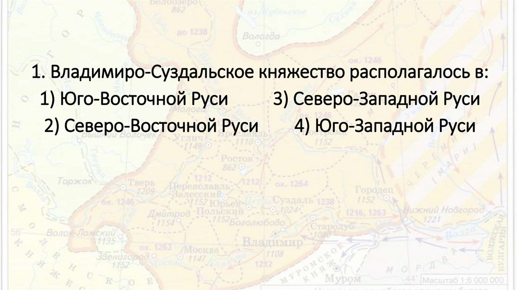 1. Владимиро-Суздальское княжество располагалось в:1) Юго-Восточной Руси