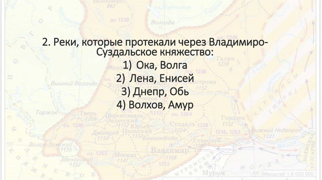 2. Реки, которые протекали через ВладимироСуздальское княжество:1) Ока, Волга