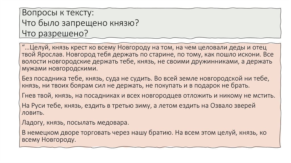 “…Целуй, князь крест ко всему Новгороду на том, на чем целовали деды и отец