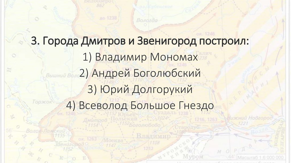 3. Города Дмитров и Звенигород построил:1) Владимир Мономах