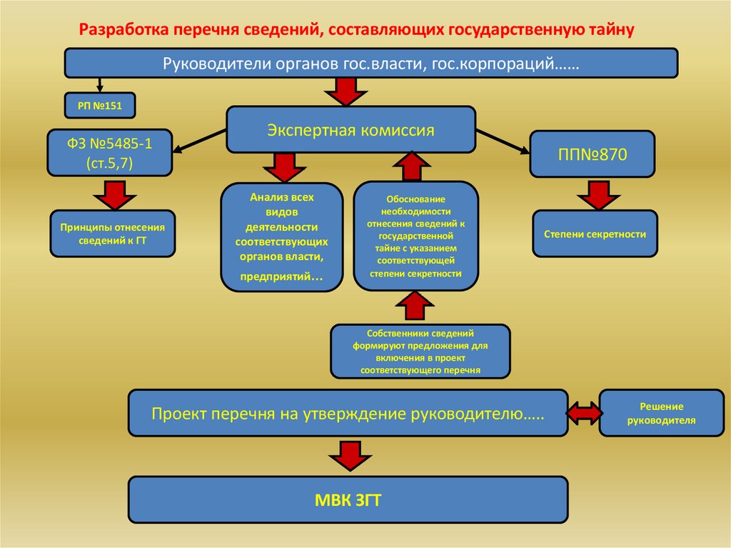 Разработка перечня сведений, составляющих государственную тайнуРуководители органов гос.власти, гос.корпораций……