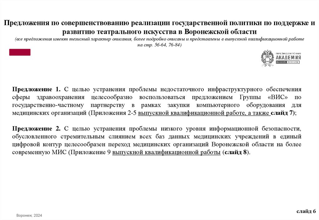 Предложения по совершенствованию реализации государственной политики по поддержке иразвитию театрального искусства в Воронежской области
