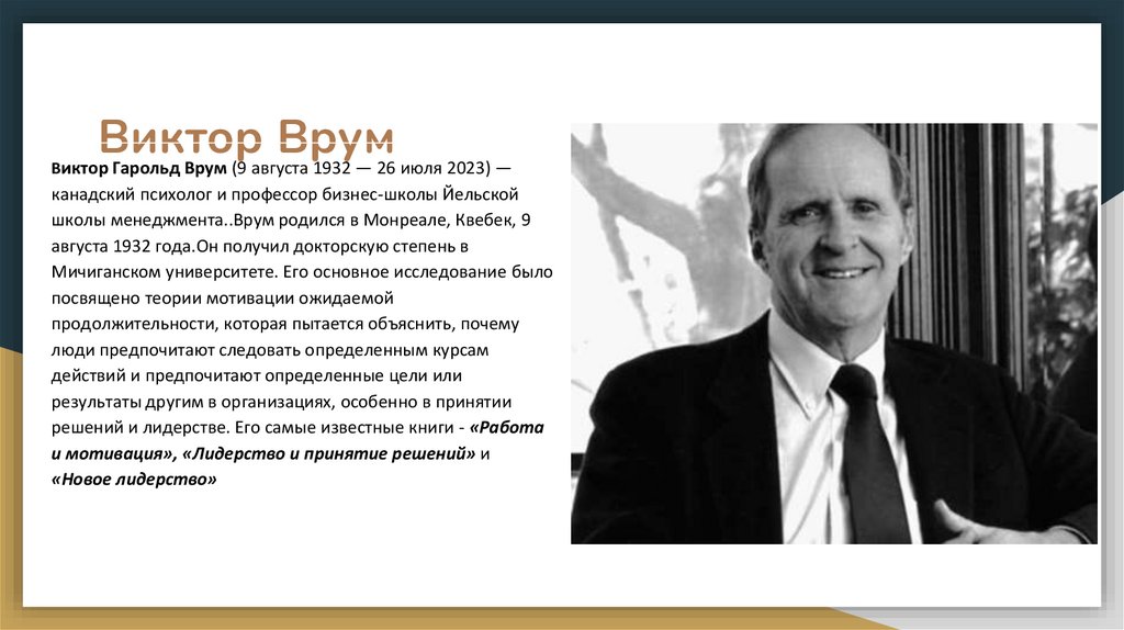 Виктор ВрумВиктор Гарольд Врум (9 августа 1932 — 26 июля 2023) —