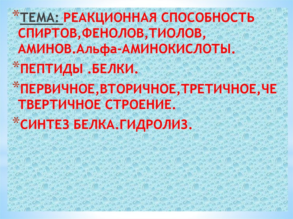 *ТЕМА: РЕАКЦИОННАЯ СПОСОБНОСТЬСПИРТОВ,ФЕНОЛОВ,ТИОЛОВ,