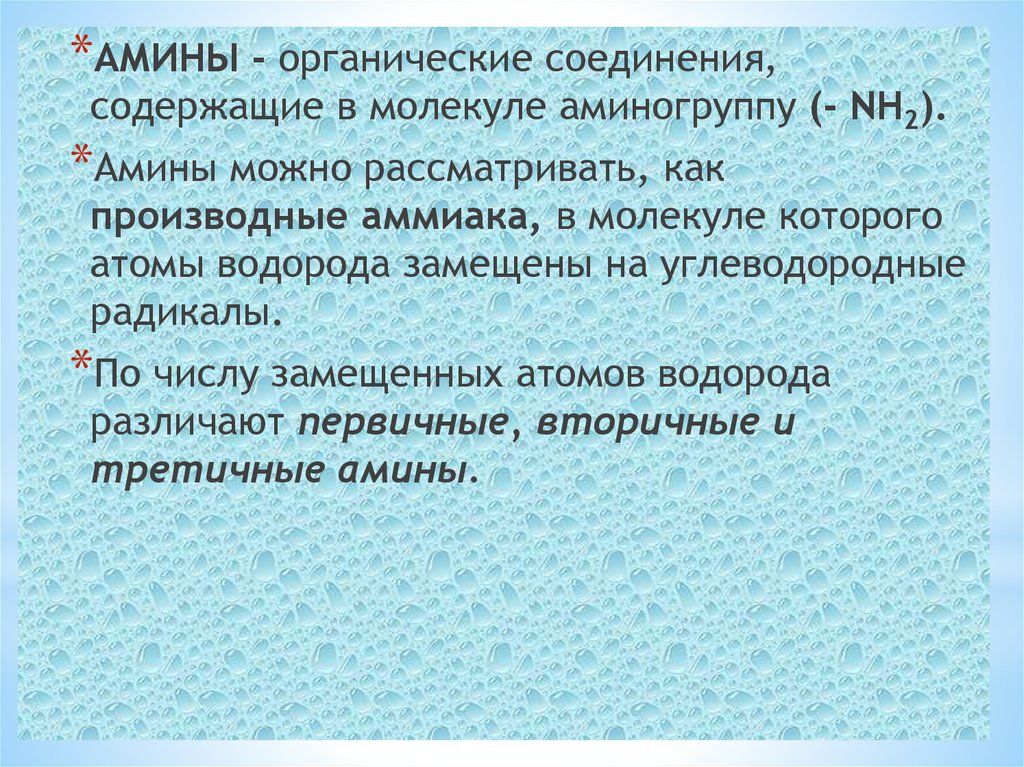 *Амины можно рассматривать, как