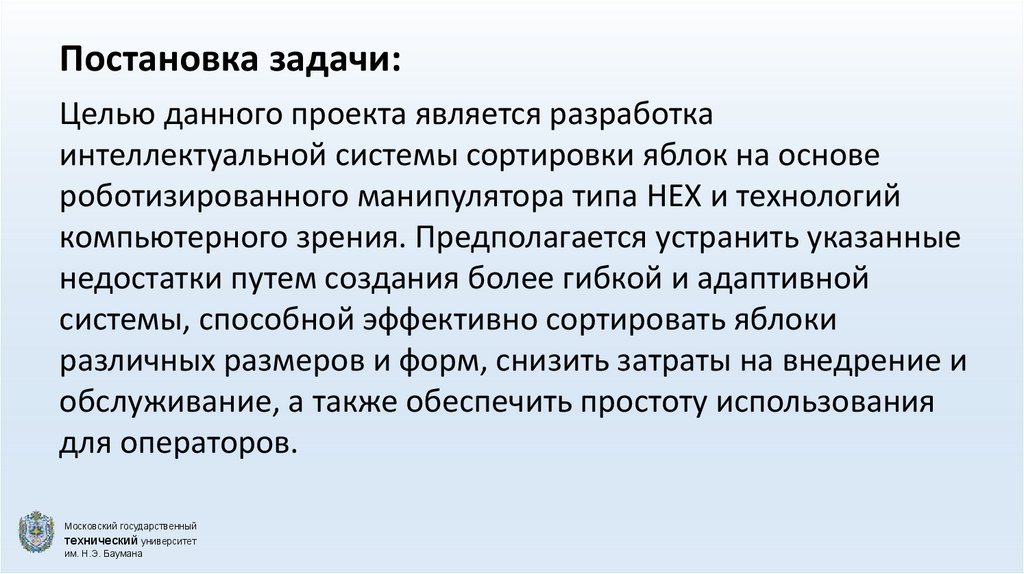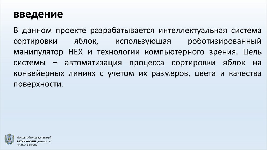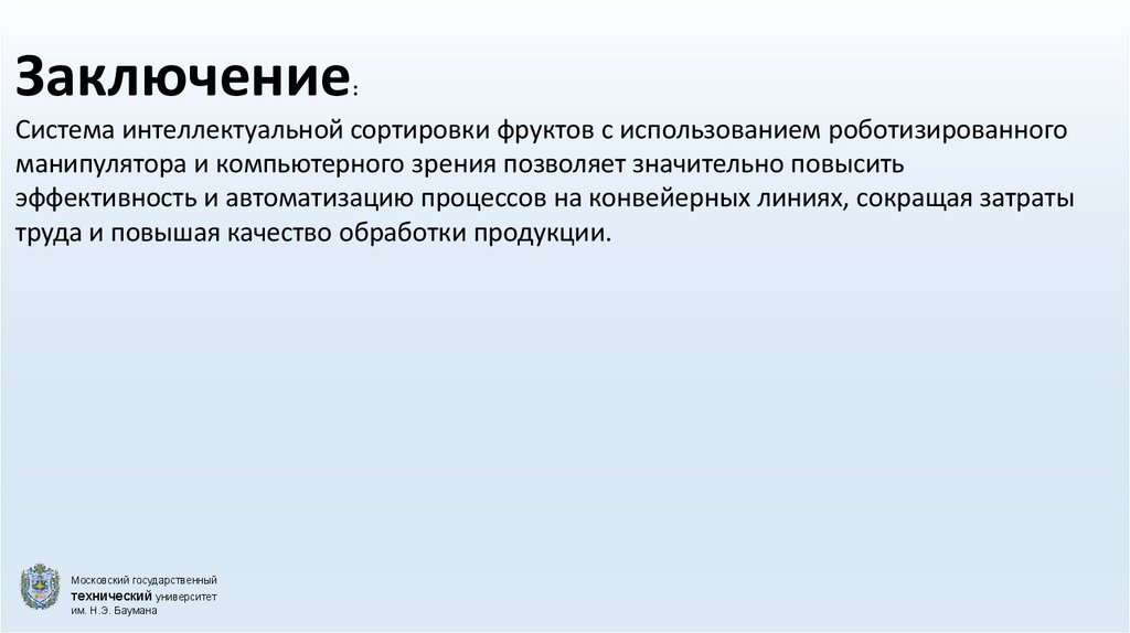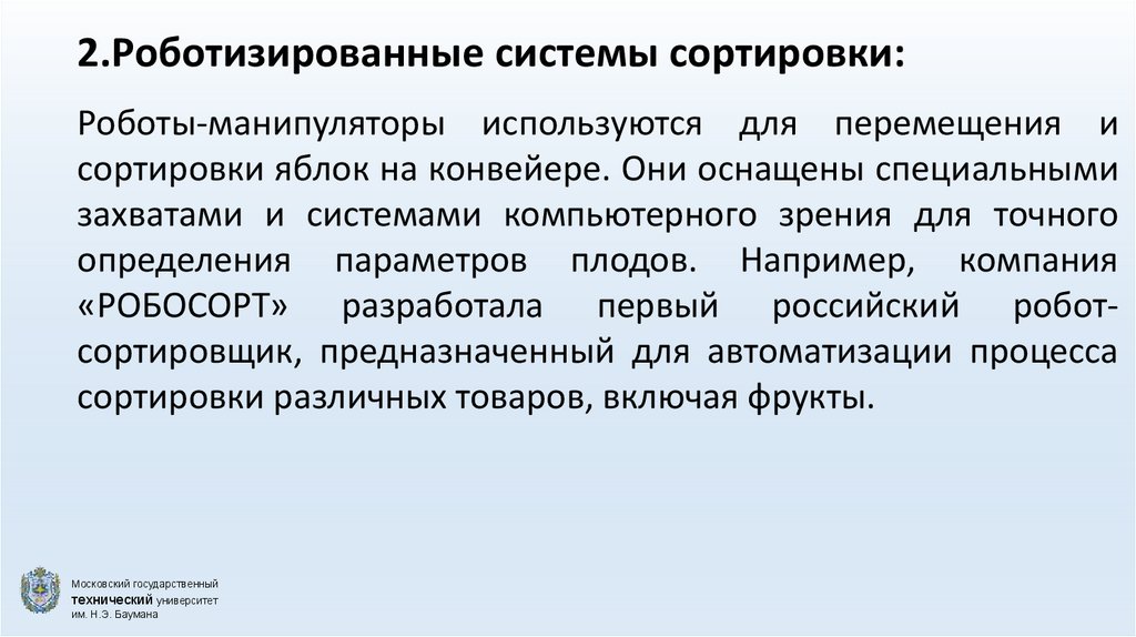 Система интеллектуальной сортировки фруктов с использованием роботизированного