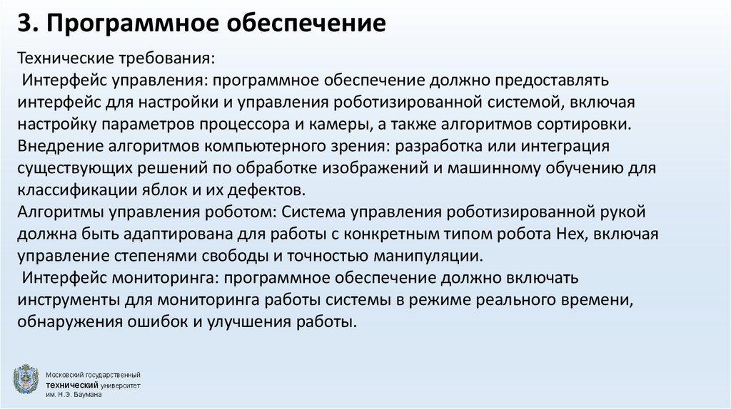 повреждения фруктов. Алгоритм управления должен учитывать данные с датчиков,