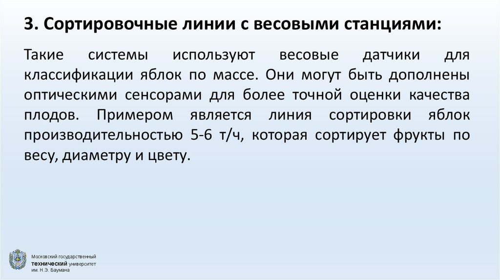 3. Сортировочные линии с весовыми станциями:Такие системы используют весовые датчики для