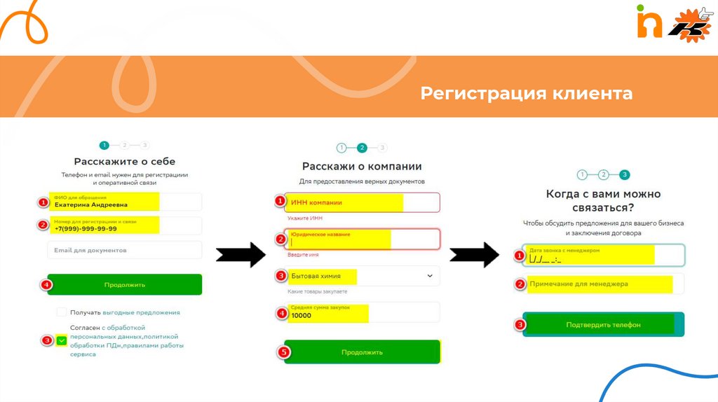 Регистрация клиента в личном кабинетеПри условии совершения покупки через
