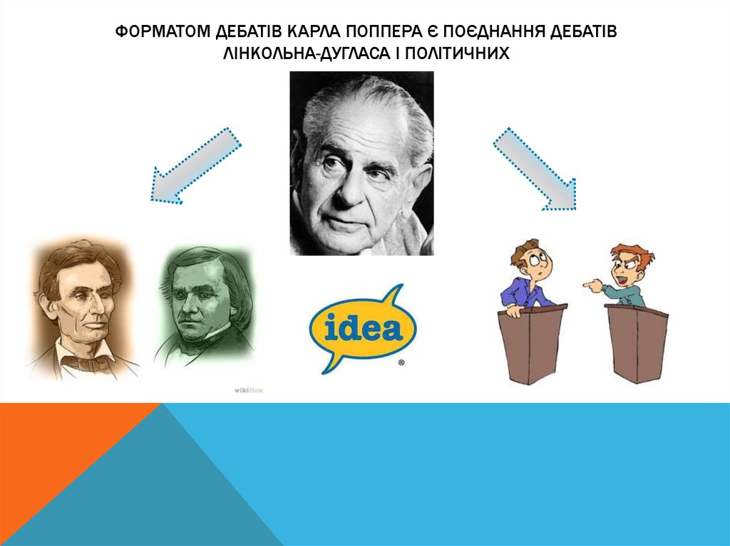 ФОРМАТОМ ДЕБАТІВ КАРЛА ПОППЕРА Є ПОЄДНАННЯ ДЕБАТІВЛІНКОЛЬНА-ДУГЛАСА І ПОЛІТИЧНИХ