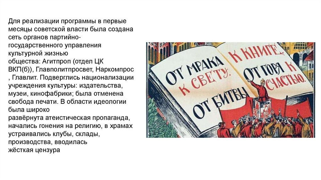 Для реализации программы в первыемесяцы советской власти была создана