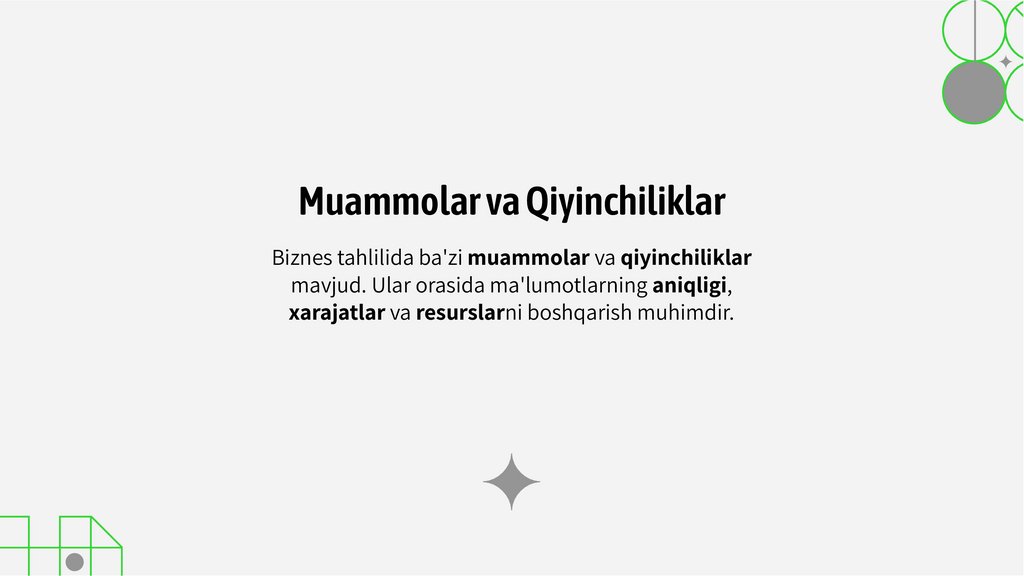 Muammolar va QiyinchiliklarBiznes tahlilida ba'zi muammolar va qiyinchiliklar
