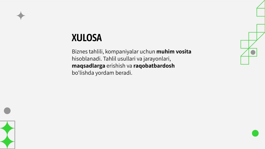 XULOSABiznes tahlili, kompaniyalar uchun muhim vosita