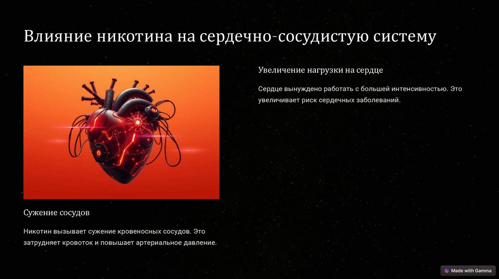 Влияние никотина на сердечно-сосудистую системуУвеличение нагрузки на сердце