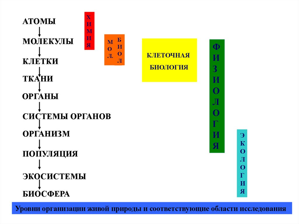Уровни организации живой природы и соответствующие области исследования
