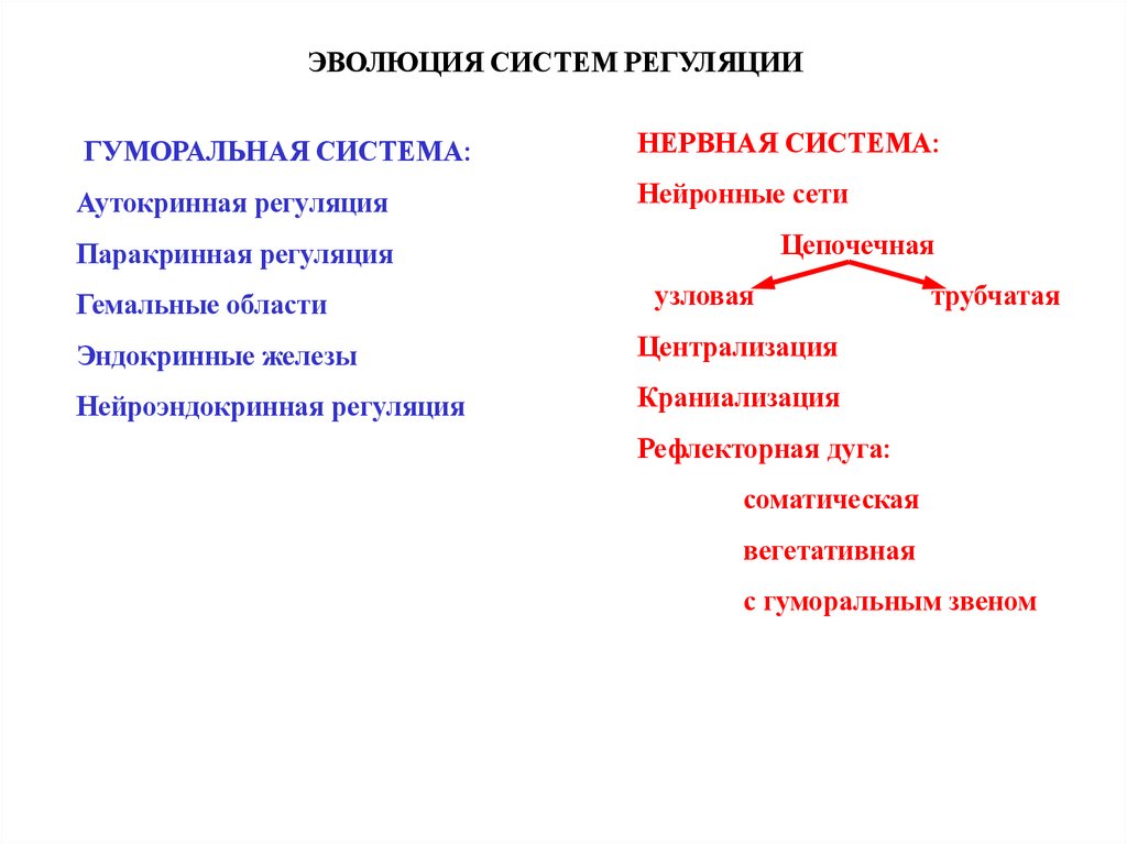 ЭВОЛЮЦИЯ СИСТЕМ РЕГУЛЯЦИИГУМОРАЛЬНАЯ СИСТЕМА:
