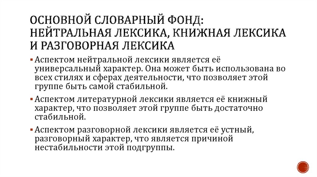 Аспектом нейтральной лексики является еёуниверсальный характер. Она может быть использована во