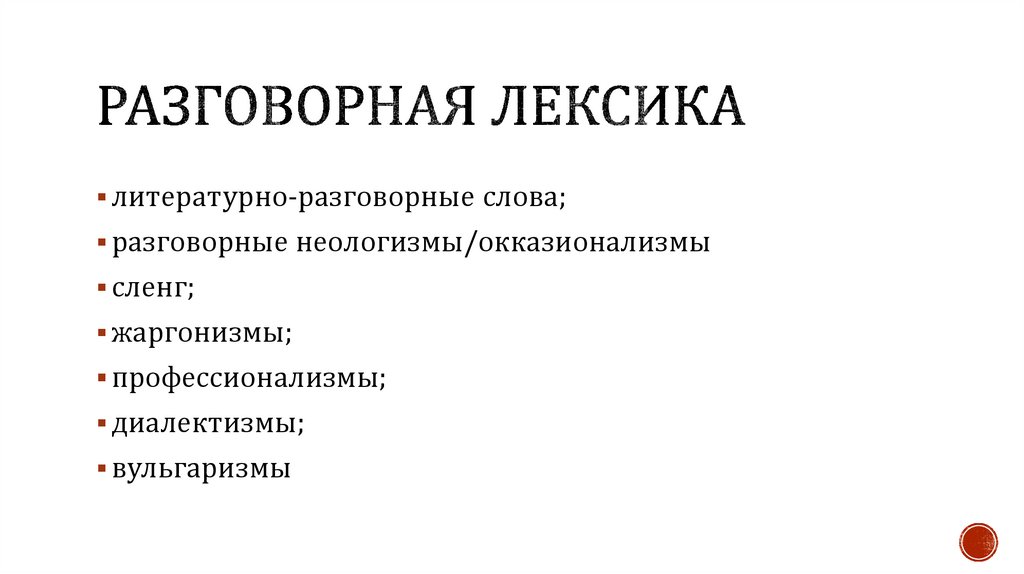 литературно-разговорные слова;разговорные неологизмы/окказионализмы