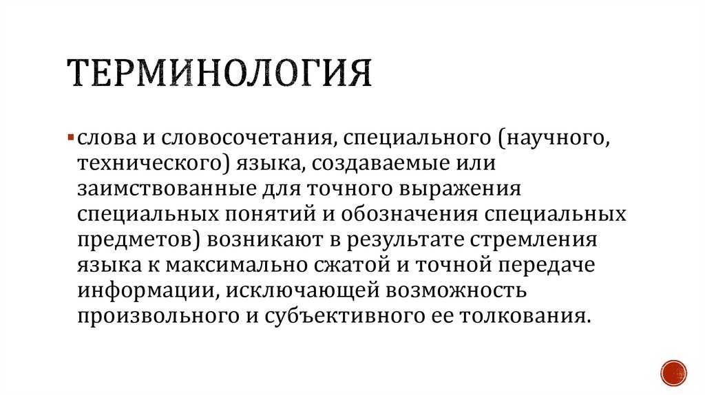слова и словосочетания, специального (научного,технического) языка, создаваемые или