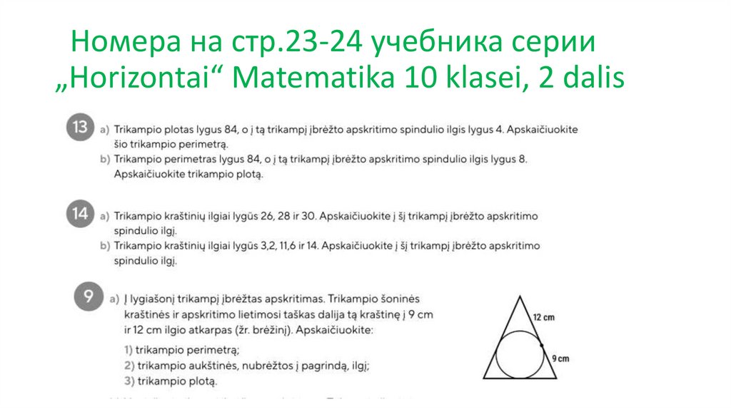 Номера на стр.23-24 учебника серии„Horizontai“ Matematika 10 klasei, 2 dalis