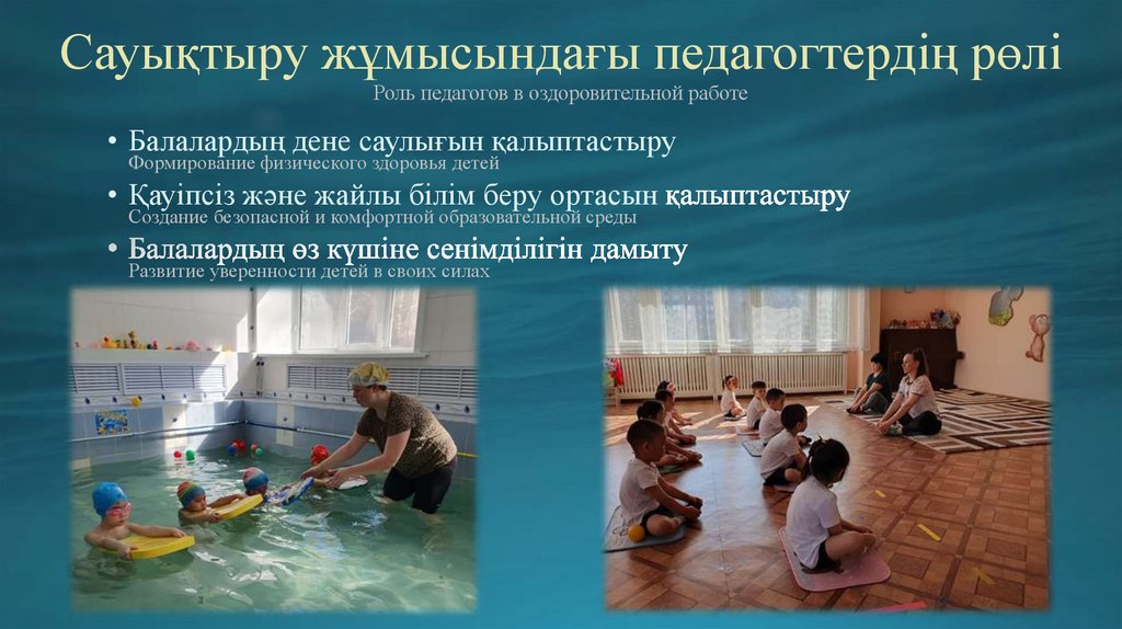 Сауықтыру жұмысындағы педагогтердің рөліРоль педагогов в оздоровительной работе