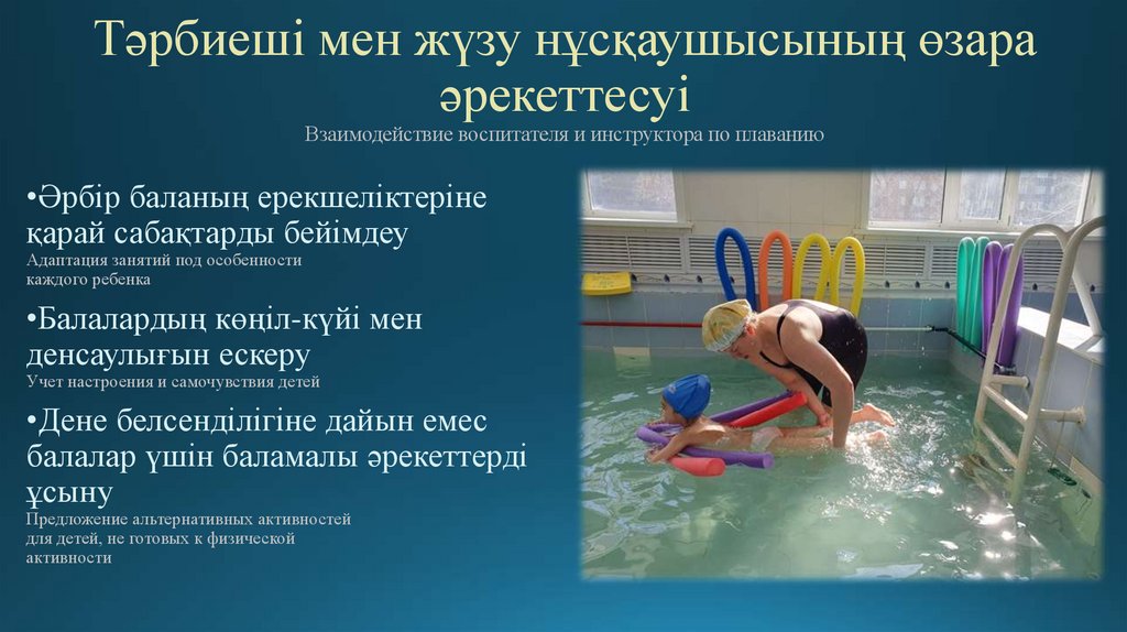 Тәрбиеші мен жүзу нұсқаушысының өзараәрекеттесуі