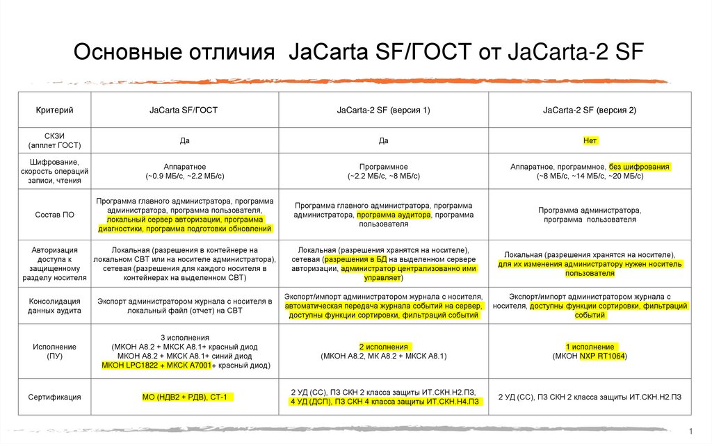 Основные отличия JaCarta SF/ГОСТ от JaCarta-2 SF