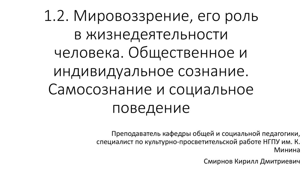 Мировоззрение, его роль в жизнедеятельности человека. Общественное и индивидуальное сознание