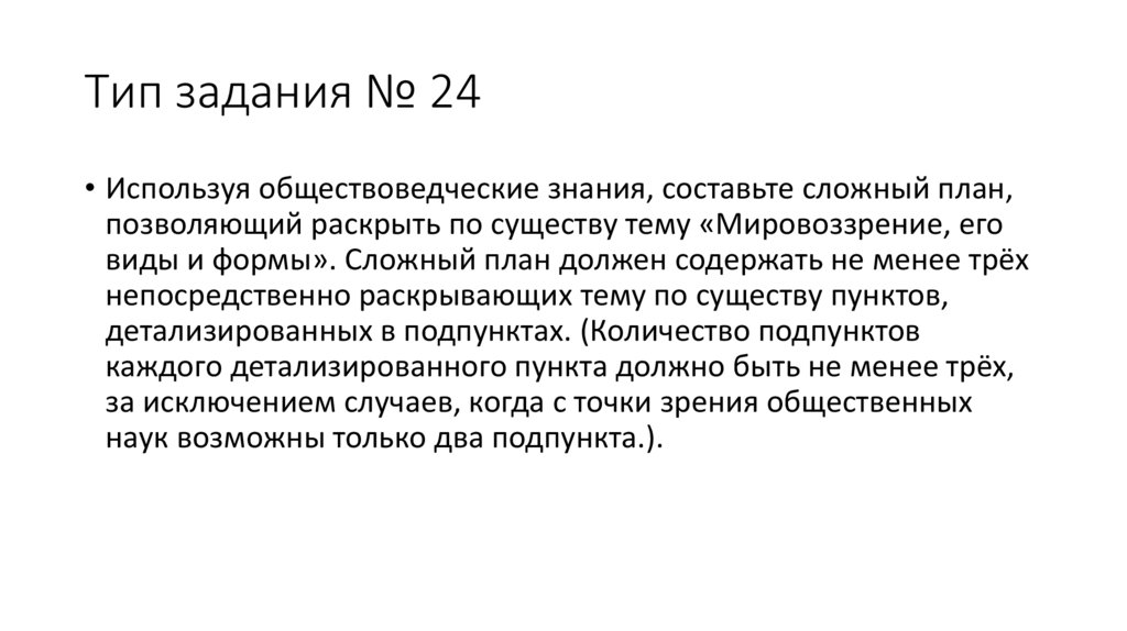 Тип задания № 24• Используя обществоведческие знания, составьте сложный план,