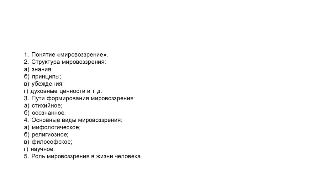 позволяющий раскрыть по существу тему «Мировоззрение, его