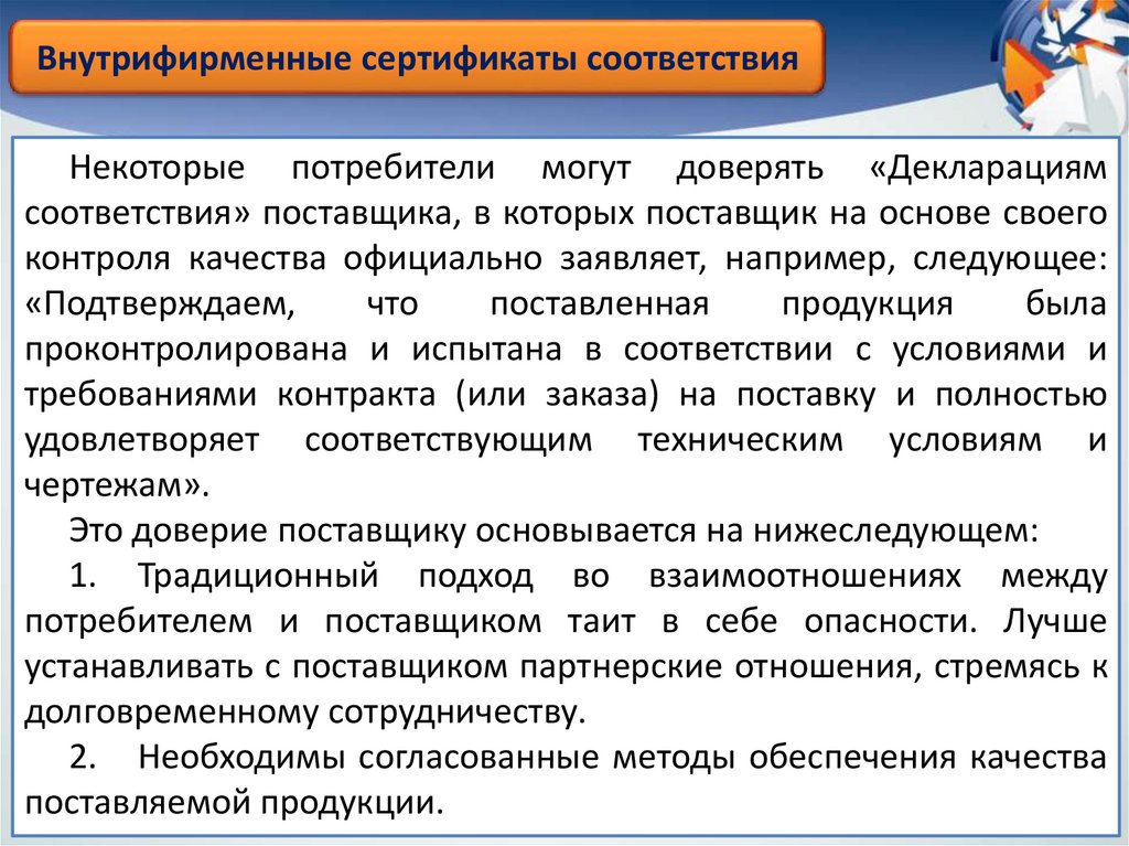 Внутрифирменные сертификаты соответствияНекоторые потребители могут доверять «Декларациям