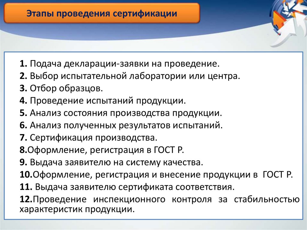Этапы проведения сертификации1. Подача декларации-заявки на проведение.