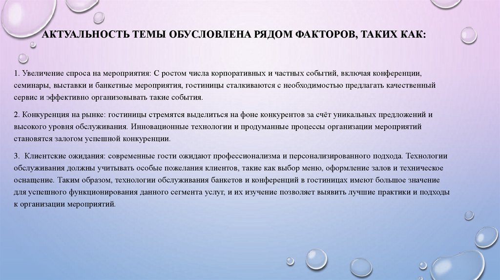 АКТУАЛЬНОСТЬ ТЕМЫ ОБУСЛОВЛЕНА РЯДОМ ФАКТОРОВ, ТАКИХ КАК:1. Увеличение спроса на мероприятия: С ростом числа корпоративных и частных событий, включая конференции,