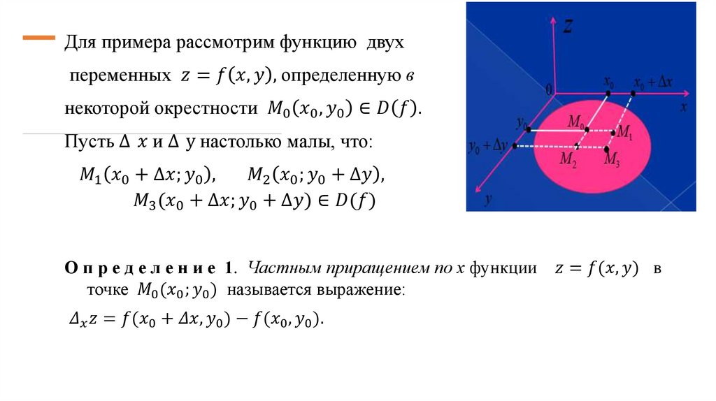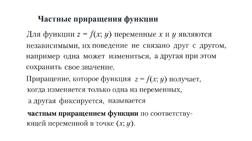 Понятие функции нескольких переменных.1. Частные приращения функции