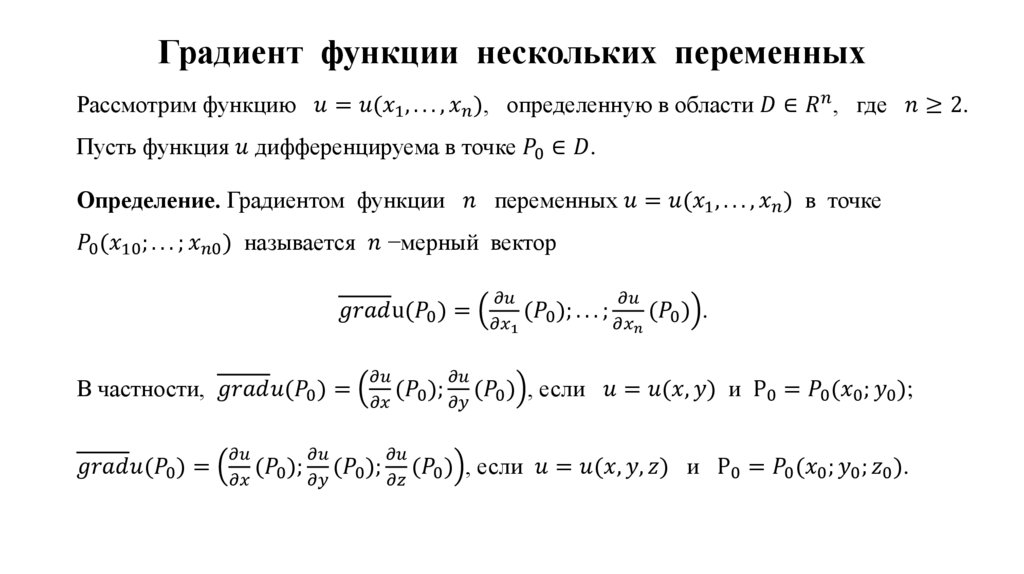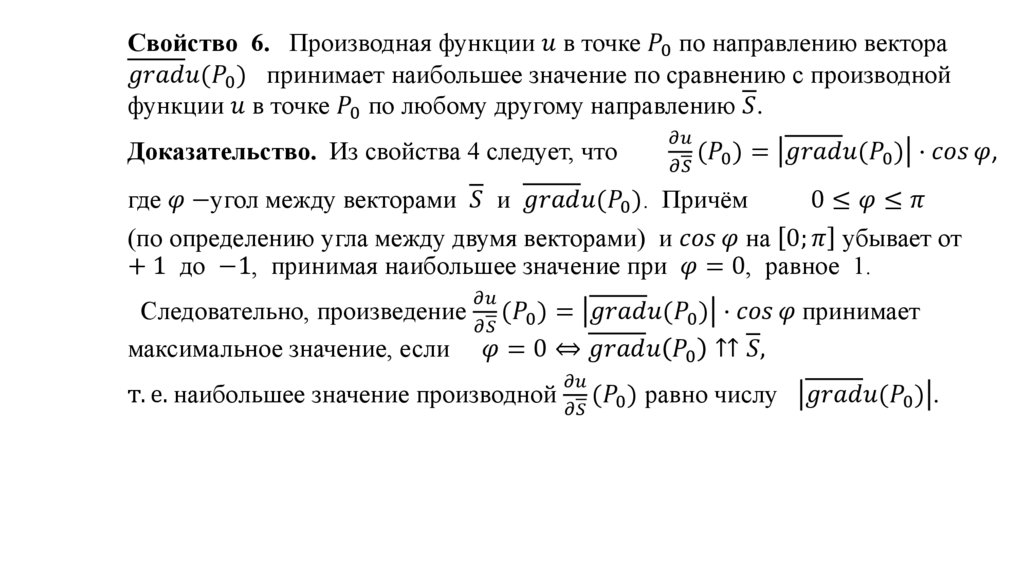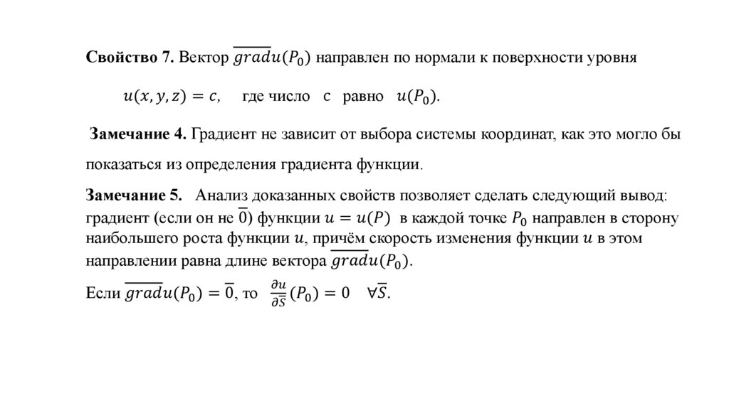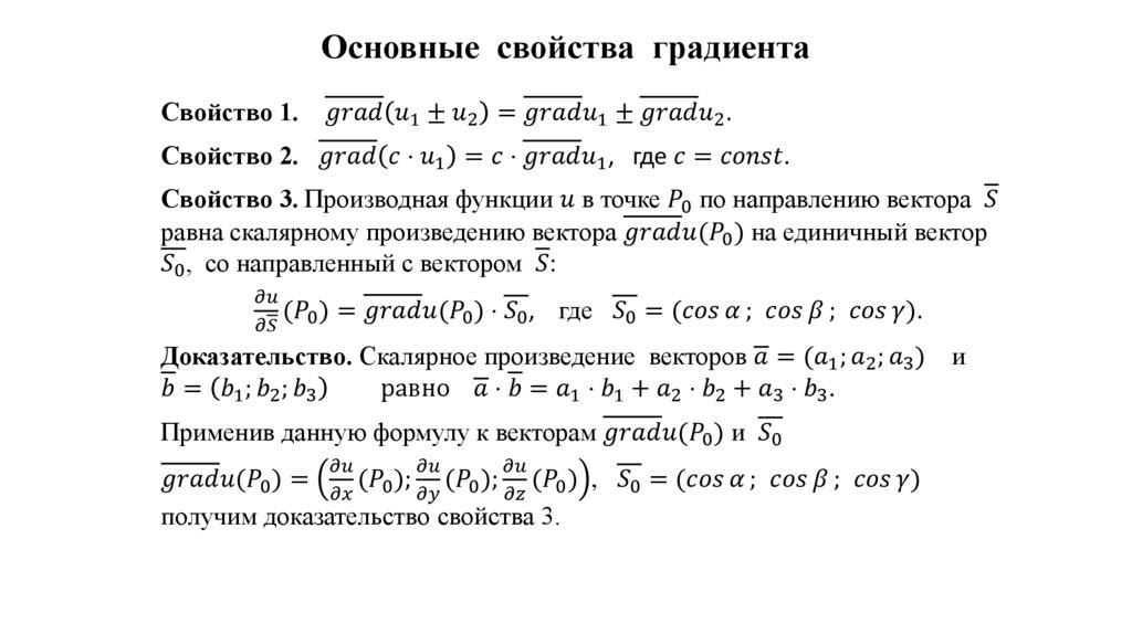 6. Основные свойства градиента. Доказательство свойств 3, 4, 6.