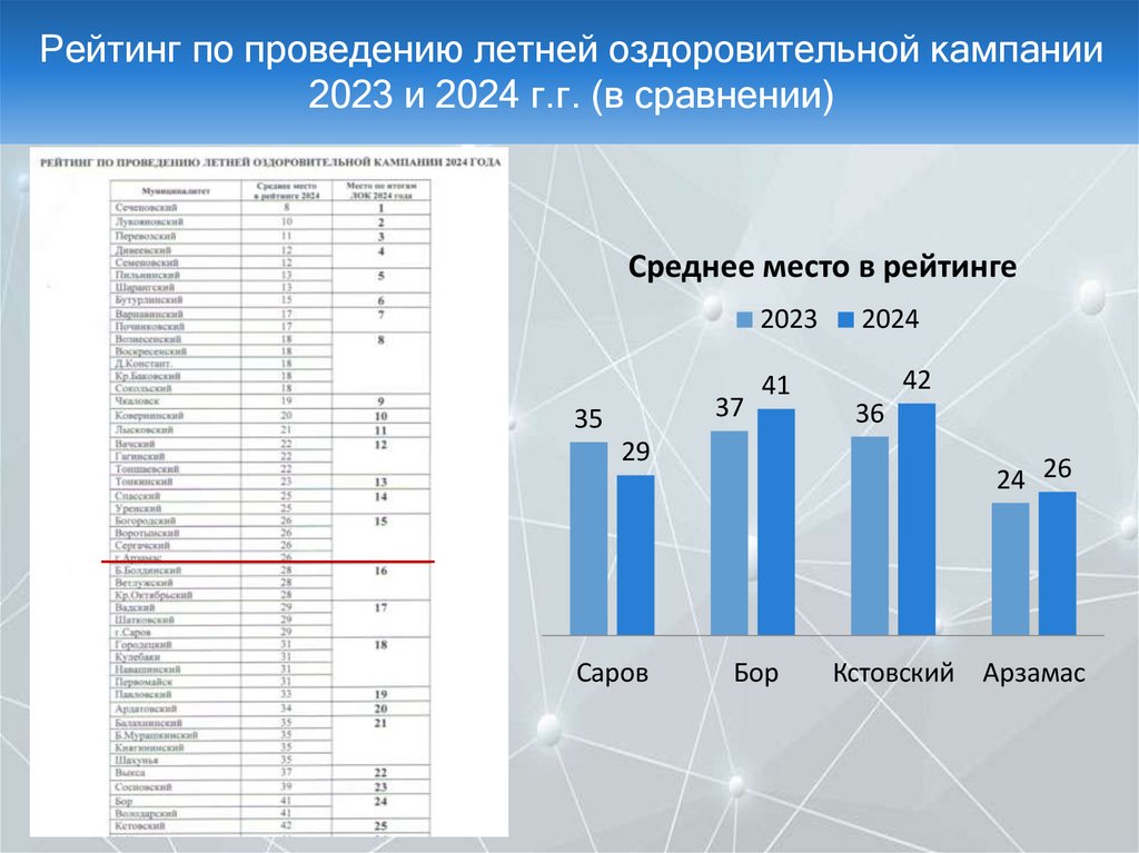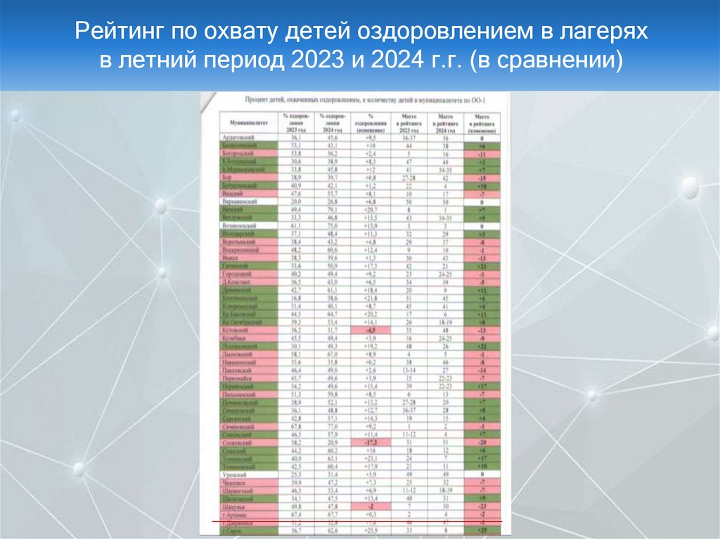 Рейтинг по проведению летней оздоровительной кампании2023 и 2024 г.г. (в сравнении)