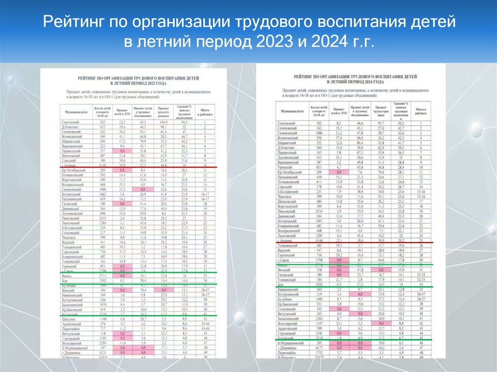 Рейтинг по организации трудового воспитания детейв летний период 2023 и 2024 г.г.
