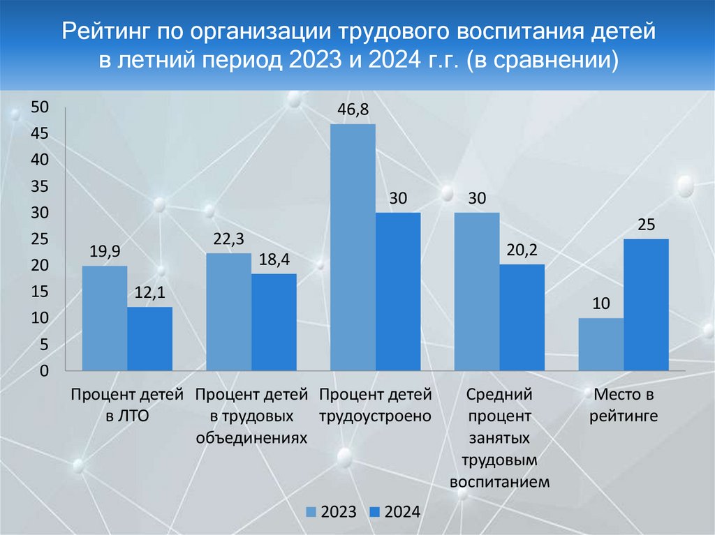 Рейтинг по организации трудового воспитания детейв летний период 2023 и 2024 г.г. (в сравнении)